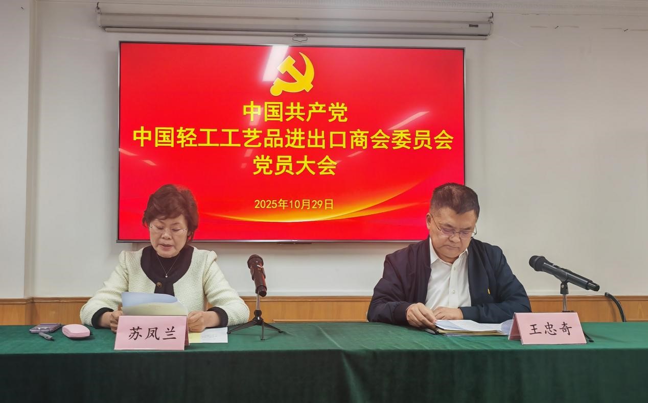 10月29日上午,中国轻工工艺品进出口商会党委召开党员大会,进行党委、纪委换届选举工作。全国性行业协会商会第十联合党委副书记兼纪委书记苏凤兰同志到会指导。大会由轻工商会党委书记王忠奇同志主持。
